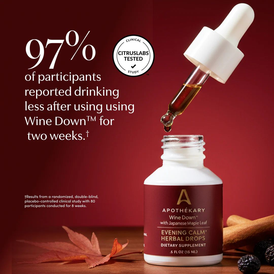 Now & Zen is a limited-edition set of three mini wine inspired herbal drops formulated with Japanese botanicals - Rosé-Tinted GlassesŸ with Cherry Blossoms, Take The Edge OffŸ with Yuzu, and Wine Down⹠with Japanese Maple Leaf to help support occasional stress relief, emotional balance, and restful sleep.
